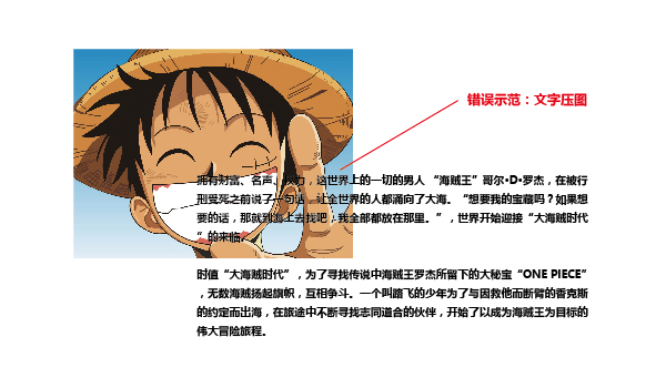 8.保證圖像不壓文字或者文字不壓圖片(在有些排版軟件中,進行拼版或圖象的重新置入等操作時,圖文互斥經常會失效,從而使圖象壓在文字上);保證文字在底圖上的清晰度(當文字壓在相近顏色的底圖上時,要注意加陰影或勾邊等修飾)。